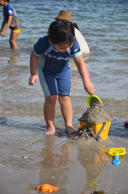 Excited as always, Ethan went straight for swim as soon as we settled. He was happily playing with the sand and water by the shore.